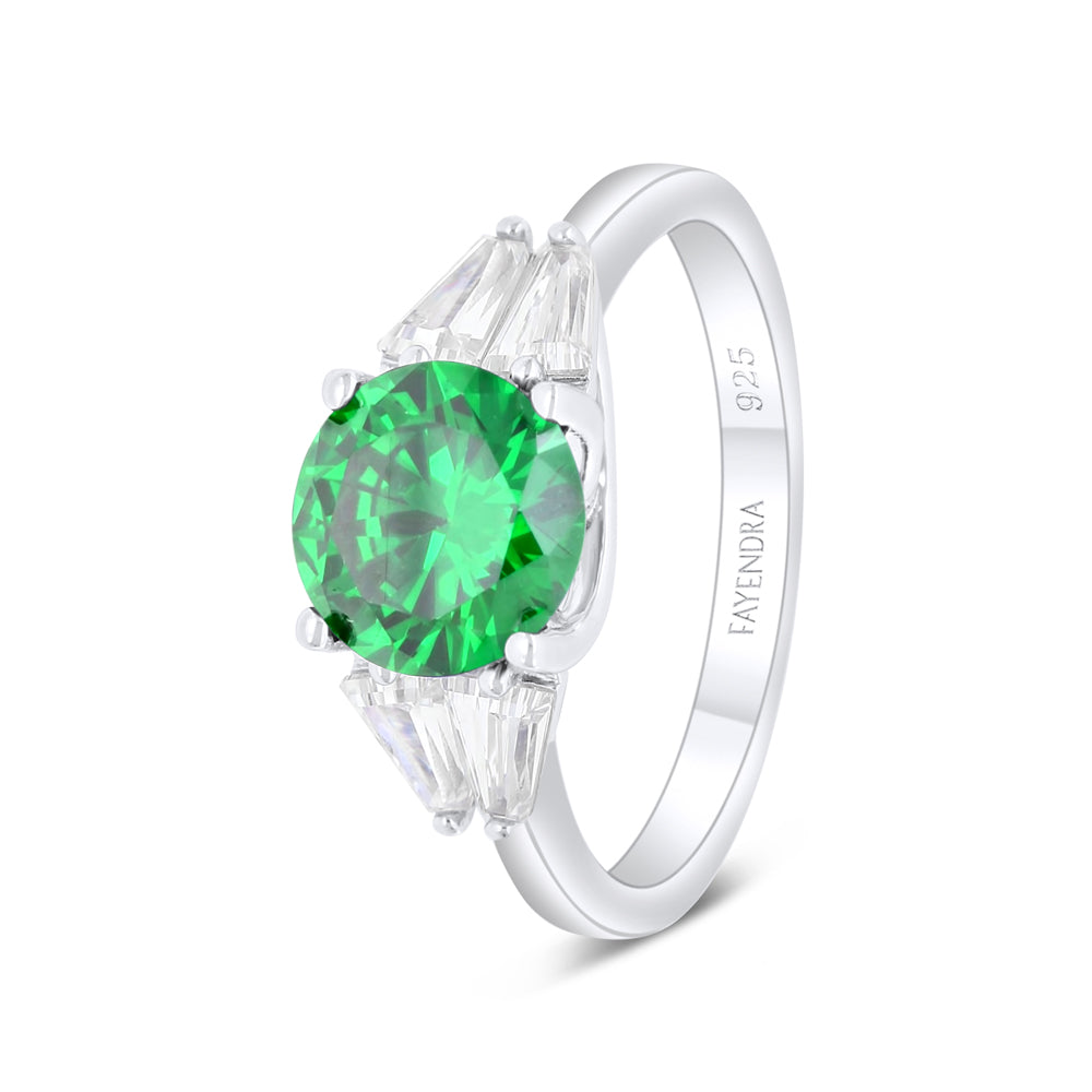 Sterling Silver 925 Ring Rhodium Plated Embedded With Emerald Zircon