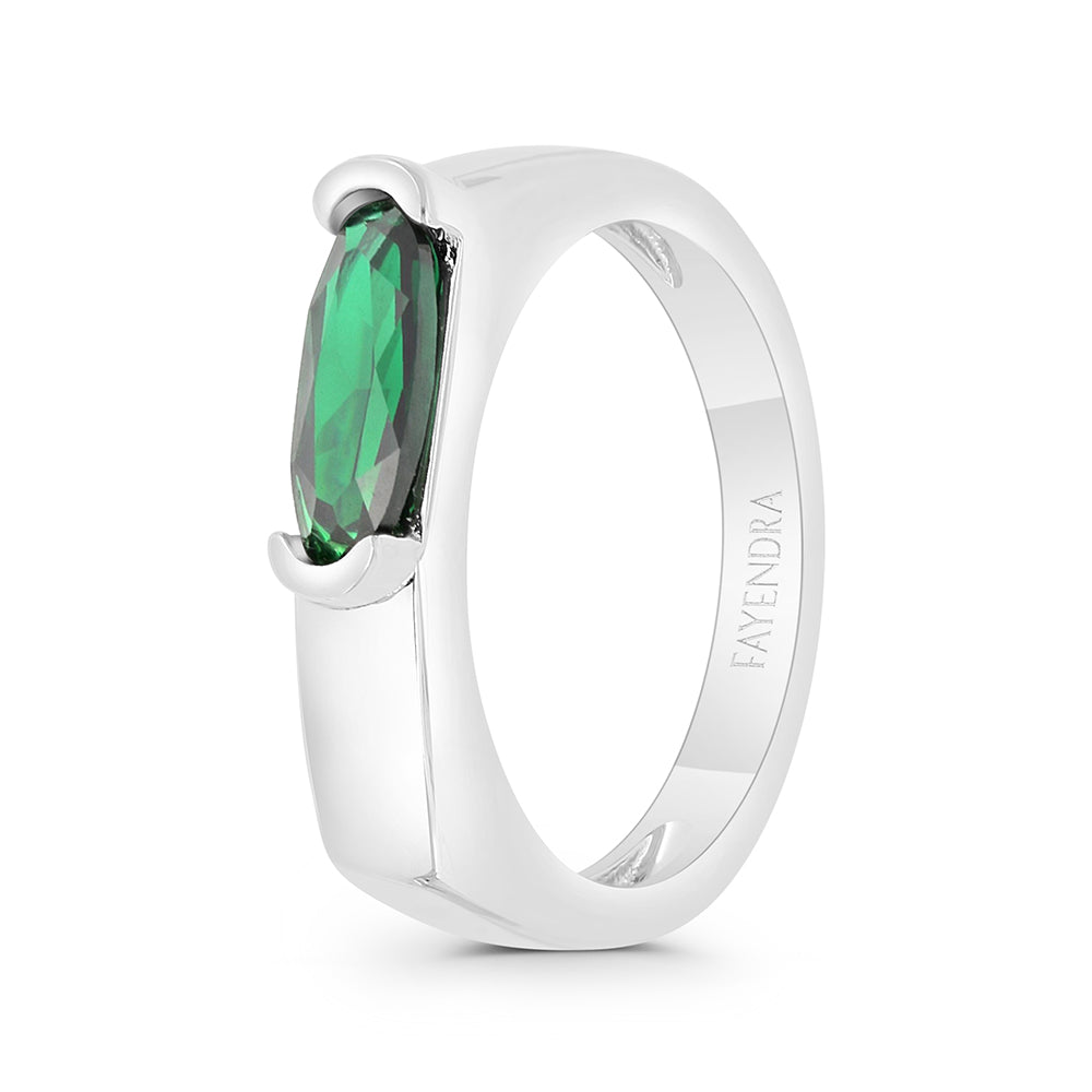 Sterling Silver 925 Ring Rhodium Plated Embedded With Emerald Zircon