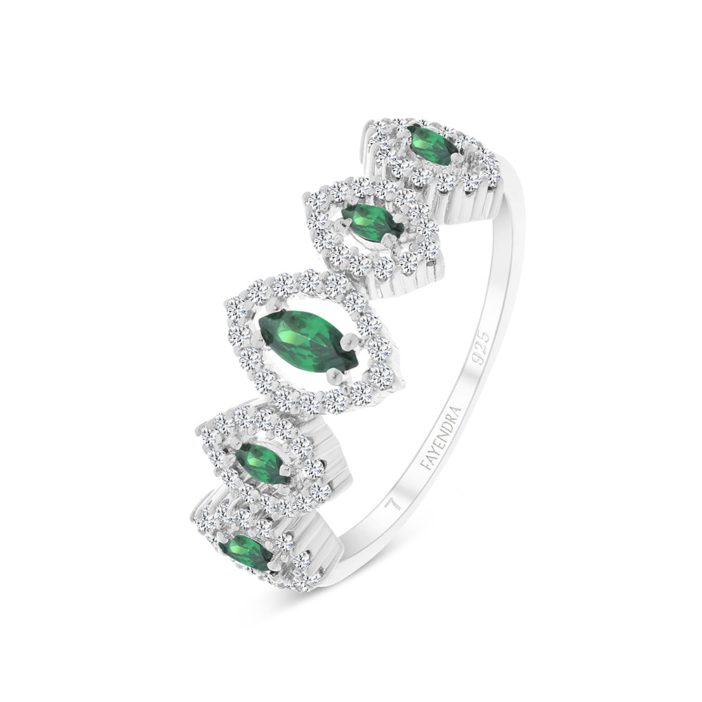 Sterling Silver 925 Ring Rhodium Plated Embedded With Emerald Zircon And White CZ
