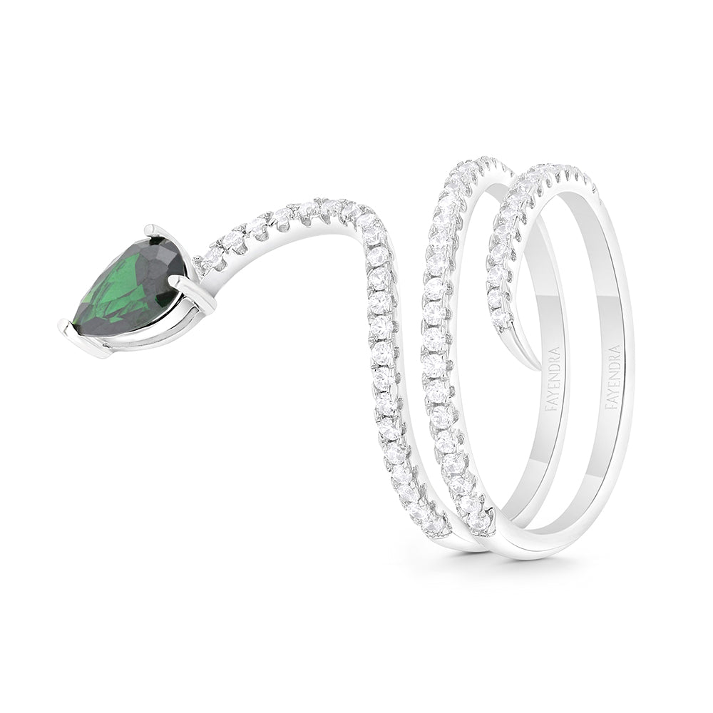 Presenting our Sterling Silver Ring, a gleaming work of art coated in rhodium and set with gleaming zircon stones and an emerald in tear cut. Rhodium plating increases the brilliant attractiveness of the piece while protecting it from corrosion. The captivating zircon stones form a stunning light symphony. This ring epitomizes timeless beauty and luxury and is destined to become a beloved treasure, whether as a sign of love or as a show-stopping accessory.It serves as a daily reminder of life's brilliance and beauty.