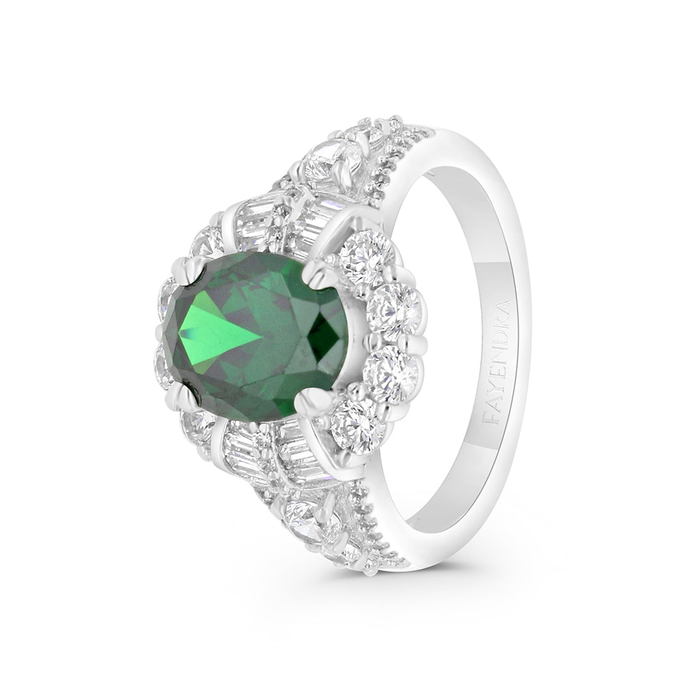 Sterling Silver 925 Ring Rhodium Plated Embedded With Emerald Zircon And White CZ