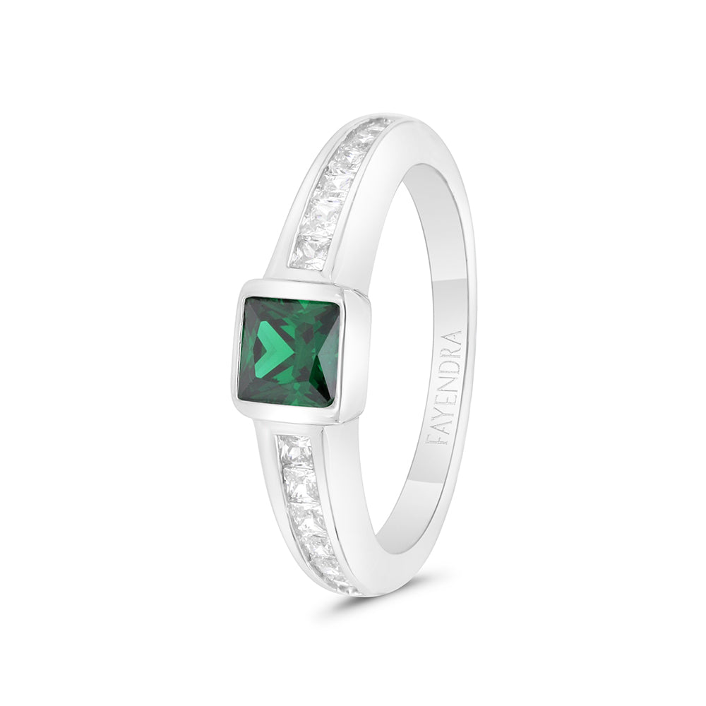 Sterling Silver 925 Ring Rhodium Plated Embedded With Emerald Zircon And White CZ For Men