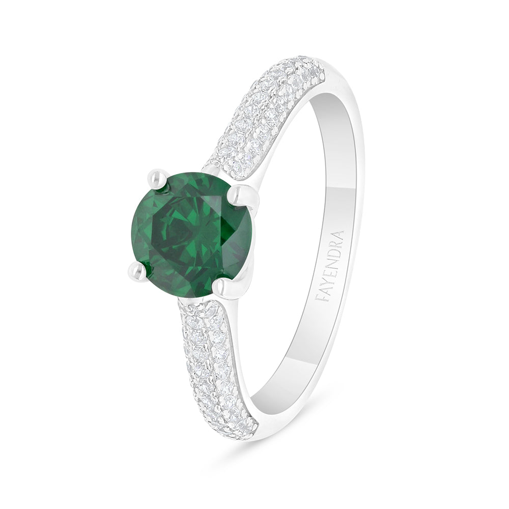Sterling Silver 925 Ring Rhodium Plated Embedded With Emerald Zircon And White Zircon