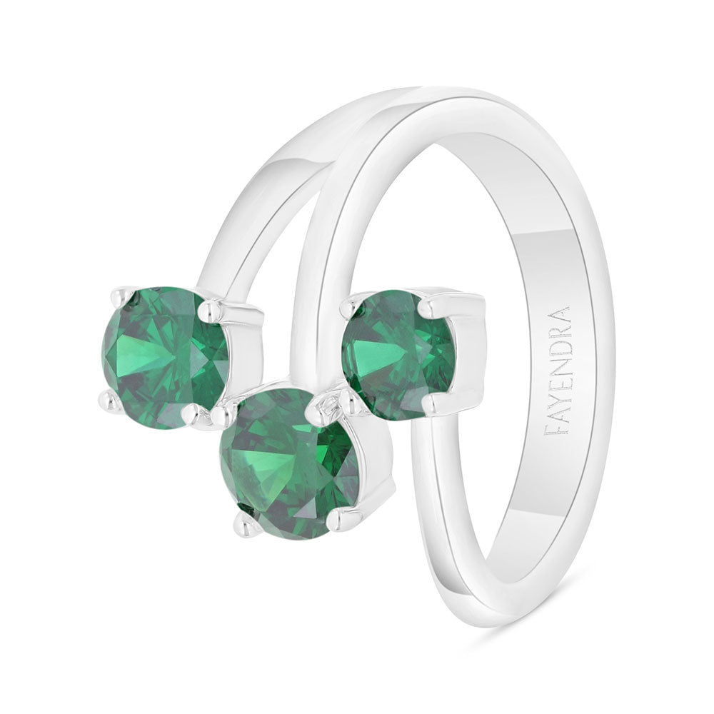Sterling Silver 925 Ring Rhodium Plated Embedded With Emerald Zircon And White Zircon