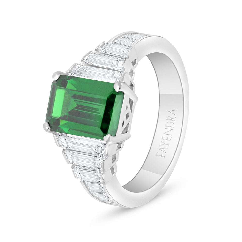 Sterling Silver 925 Ring Rhodium Plated Embedded With Emerald Zircon And White Zircon