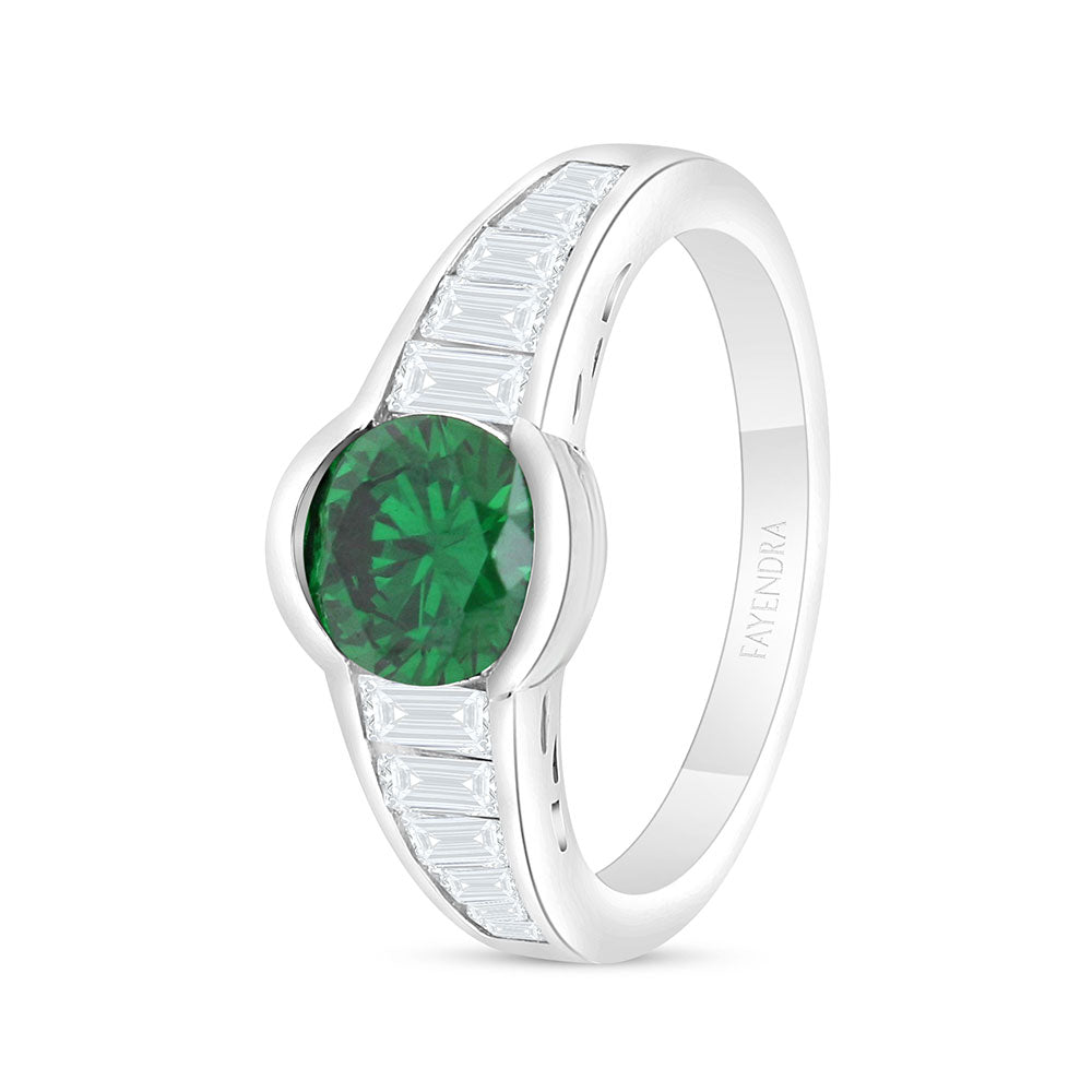 Sterling Silver 925 Ring Rhodium Plated Embedded With Emerald Zircon And White Zircon