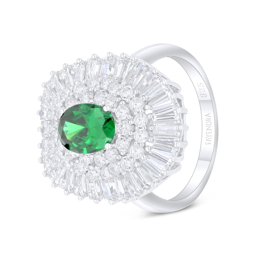 Sterling Silver 925 Ring Rhodium Plated Embedded With Emerald Zircon And White Zircon