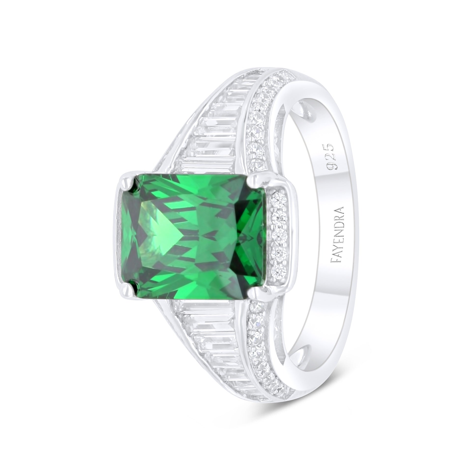 Sterling Silver 925 Ring Rhodium Plated Embedded With Emerald Zircon And White Zircon
