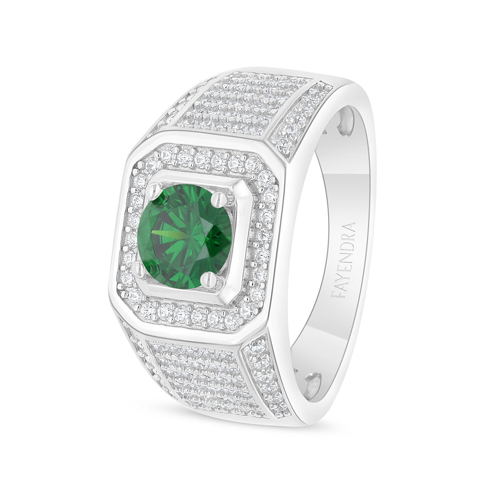 Sterling Silver 925 Ring Rhodium Plated Embedded With Emerald Zircon And White Zircon