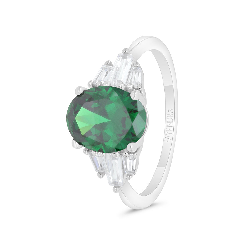 Sterling Silver 925 Ring Rhodium Plated Embedded With Emerald Zircon And White Zircon