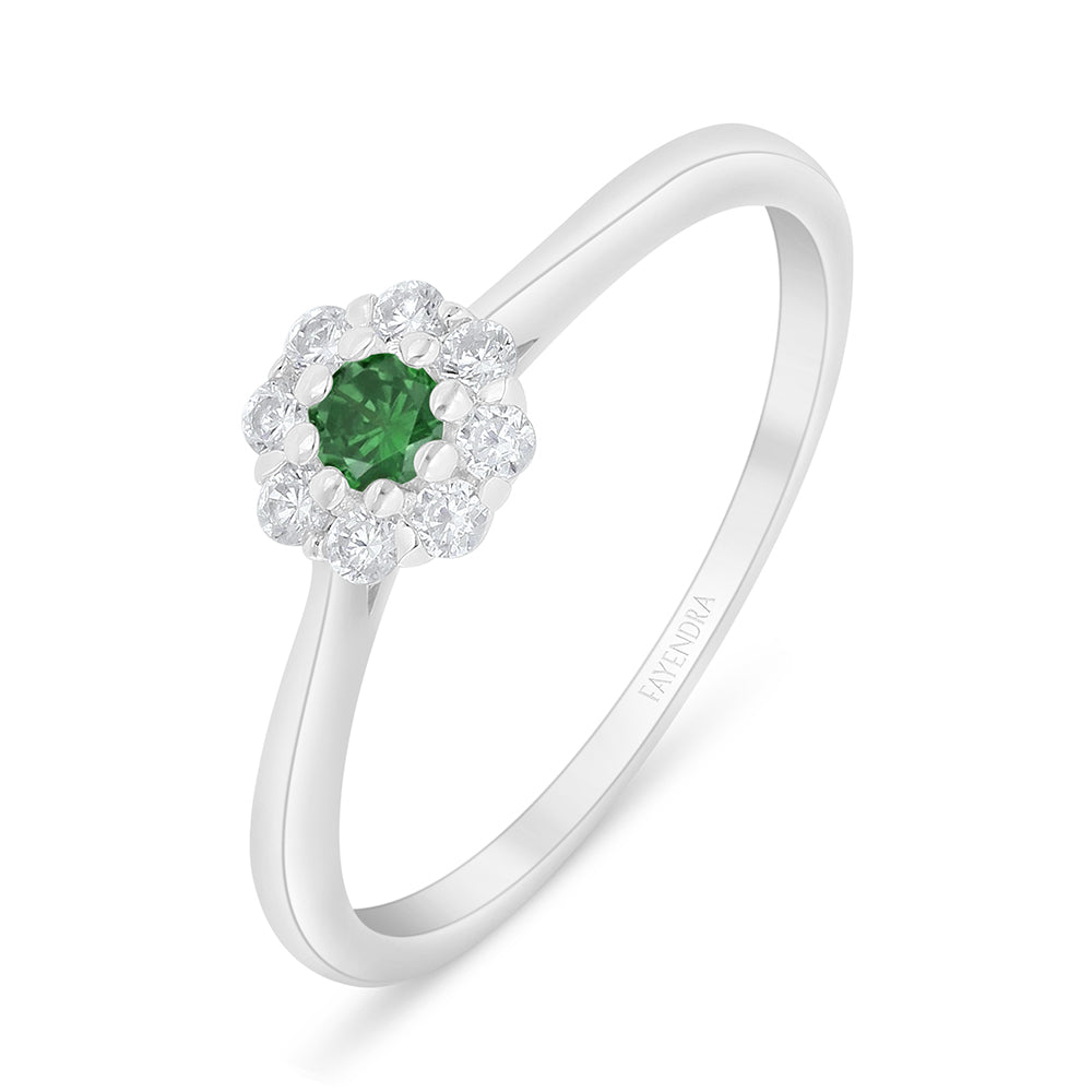 Sterling Silver 925 Ring Rhodium Plated Embedded With Emerald Zircon And White Zircon