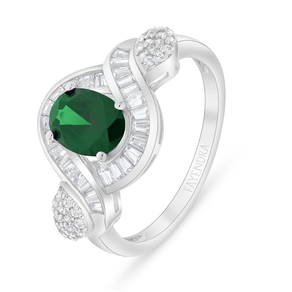 Sterling Silver 925 Ring Rhodium Plated Embedded With Emerald Zircon And White Zircon