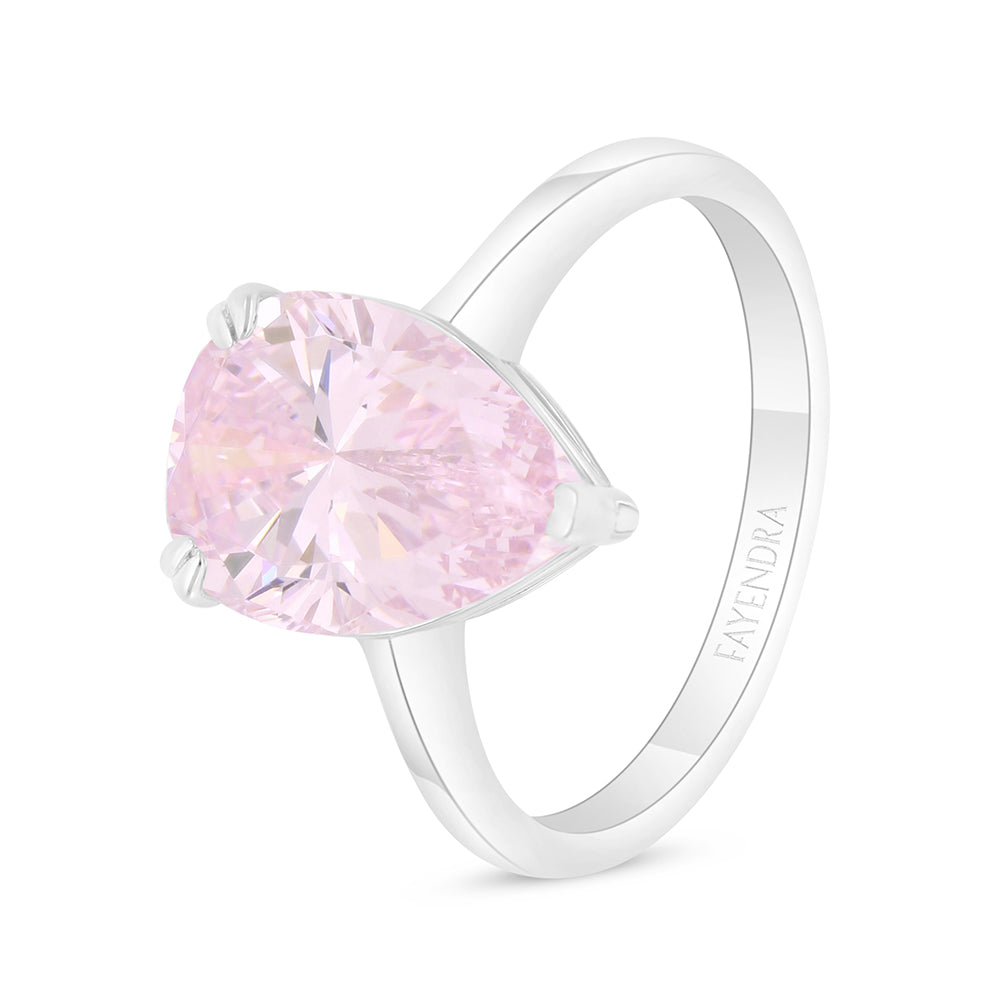 Sterling Silver 925 Ring Rhodium Plated Embedded With Pink Zircon