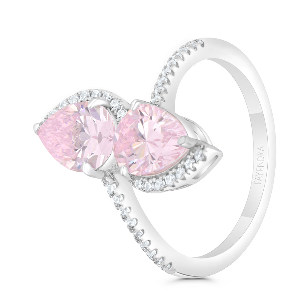 Sterling Silver 925 Ring Rhodium Plated Embedded With Pink Zircon And White CZ