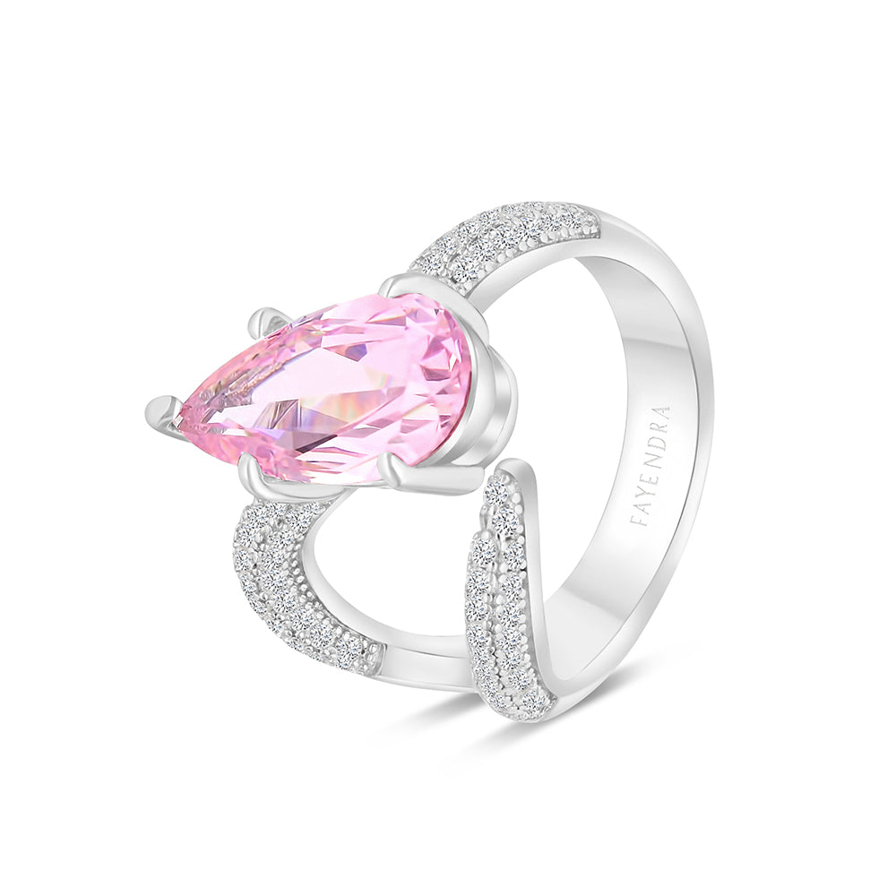 Sterling Silver 925 Ring Rhodium Plated Embedded With Pink Zircon And White CZ