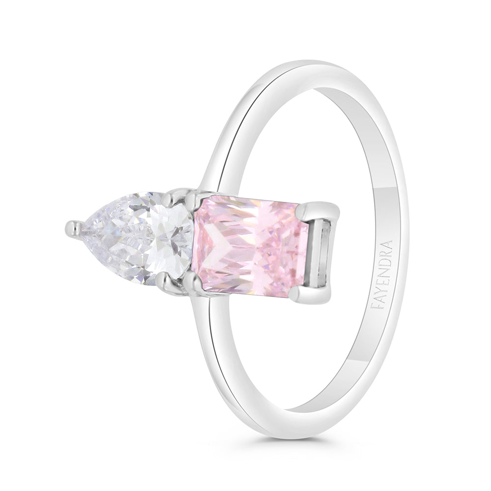 Total weight: 2.6gFocus on loving and caring for yourself, as you are the one who deserves this love the most. Treat yourself to our elegant 925 sterling silver rings studded with cubic zirconia and plated in rhodium, just like this elegant ring adorned with pink zircon in emerald-cut and white zircon in teardrop cut from our new collection.