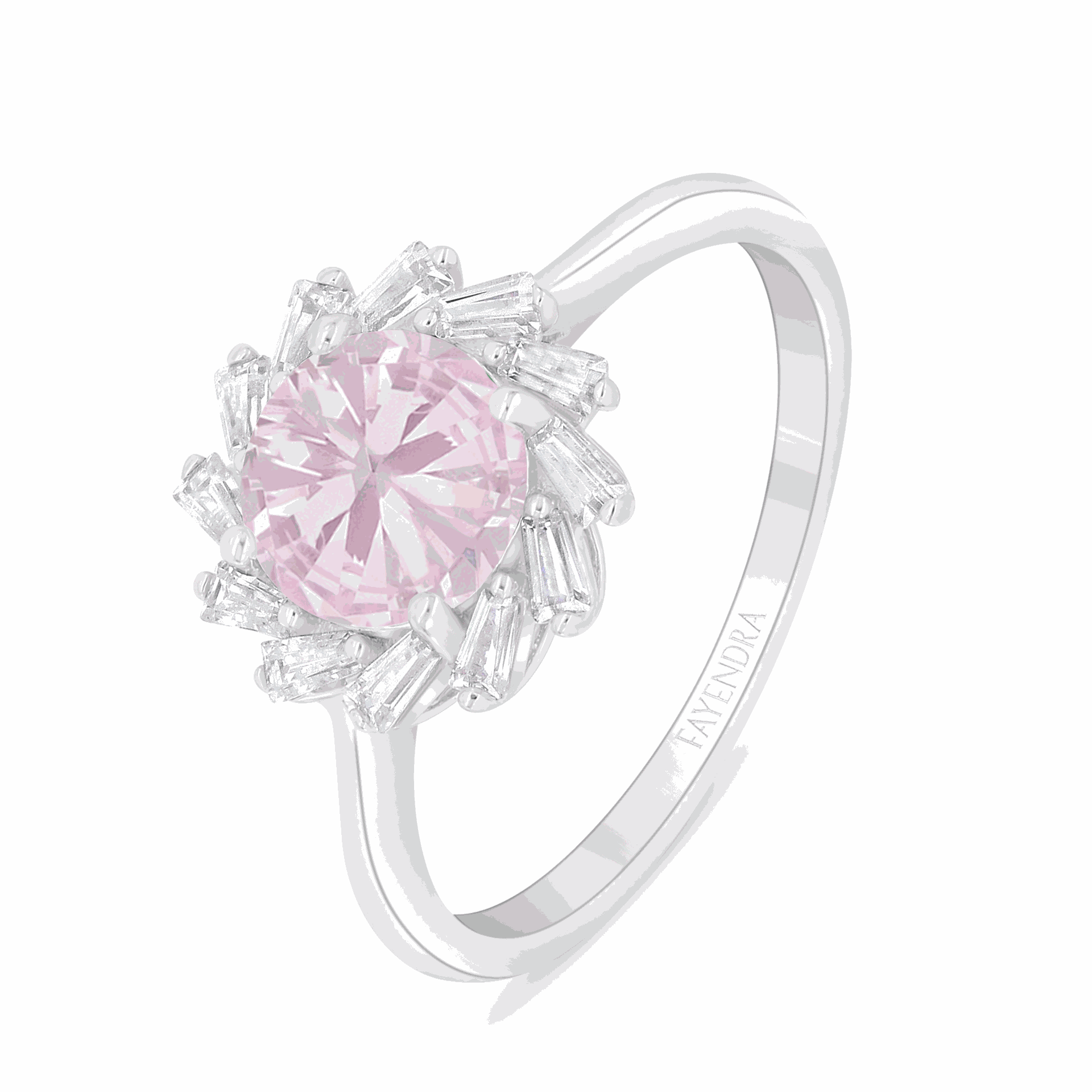 Sterling Silver 925 Ring Rhodium Plated Embedded With Pink Zircon And White Zircon