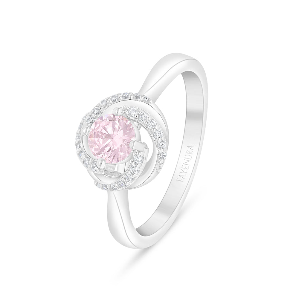 This ring is designed to accompany your happiest moments, with its captivating beauty and precise craftsmanship in 925 sterling silver, coated with rhodium to preserve its shine and protect it over time. At the heart of this design lies a brilliant pink zircon stone, surrounded by a harmonious swirl of shimmering white zircon stones that reflect the light from every angle, creating a radiant composition of sparkle and charm. Shop it now!