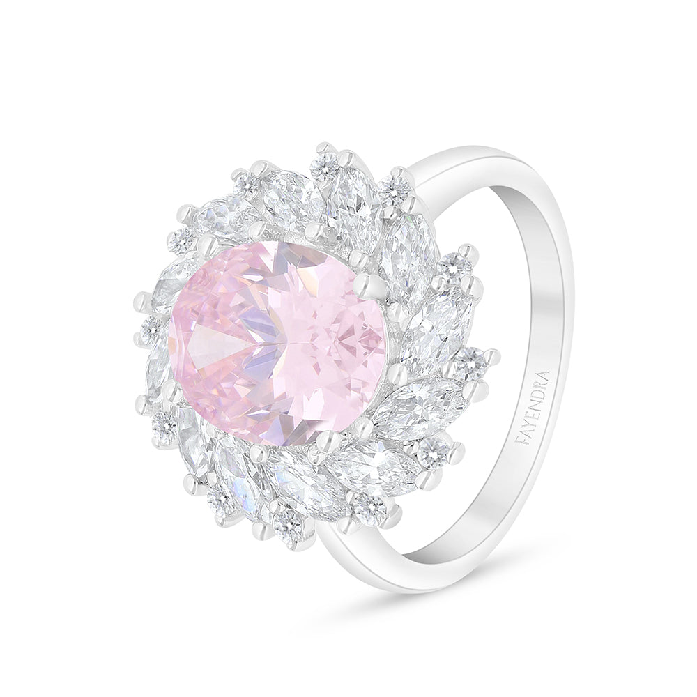 Total Weight: 5.9gShine with an angelic look wearing this pure 925 sterling silver ring, coated with rhodium for ultimate protection and shine. The design features a dazzling central pink zircon stone, surrounded by delicate white zircon petals in a breathtaking floral shape. Wear it and feel effortlessly confident, radiant, and elegant. Add it to your cart now!