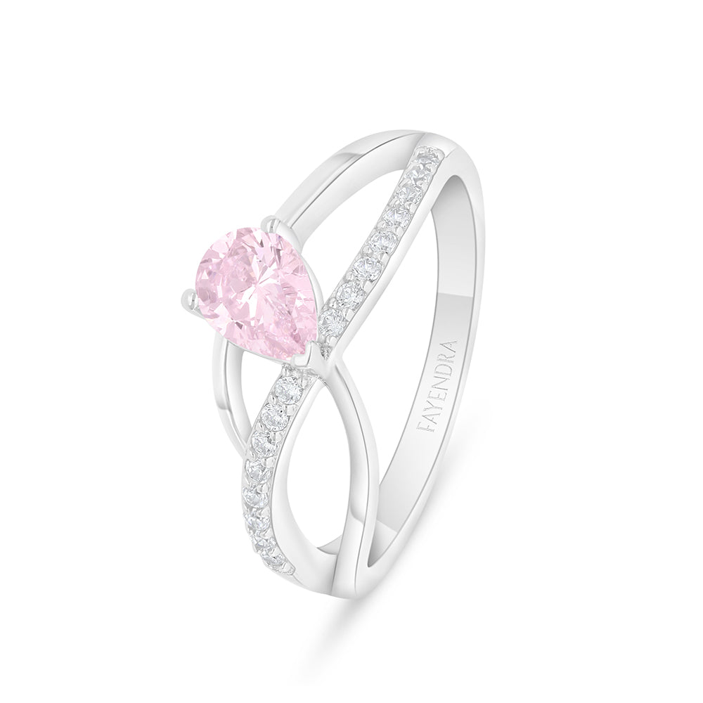 Total Weight: 2.8gHere’s a ring from Fayendra made of pure 925 sterling silver, coated with rhodium for added protection and shine. It features three smoothly interwoven bands, joined together by a luxurious pink zircon stone. One of the bands is fully adorned with small white zircon stones, adding a unique sparkle and brilliance that reflects the beauty and uniqueness of your choices. Get it now!