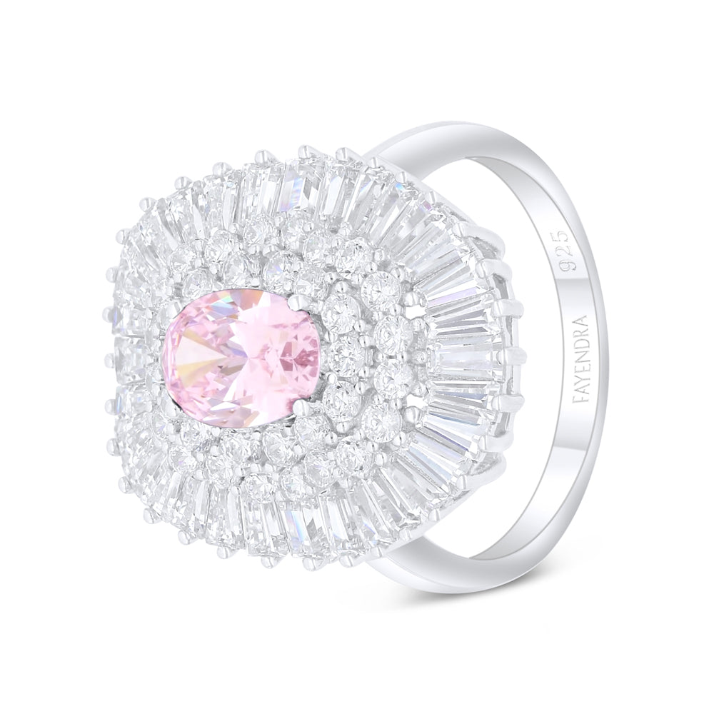 Sterling Silver 925 Ring Rhodium Plated Embedded With Pink Zircon And White Zircon