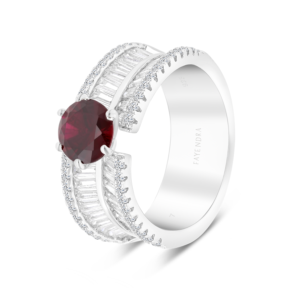 Sterling Silver 925 Ring Rhodium Plated Embedded With Ruby Corundum