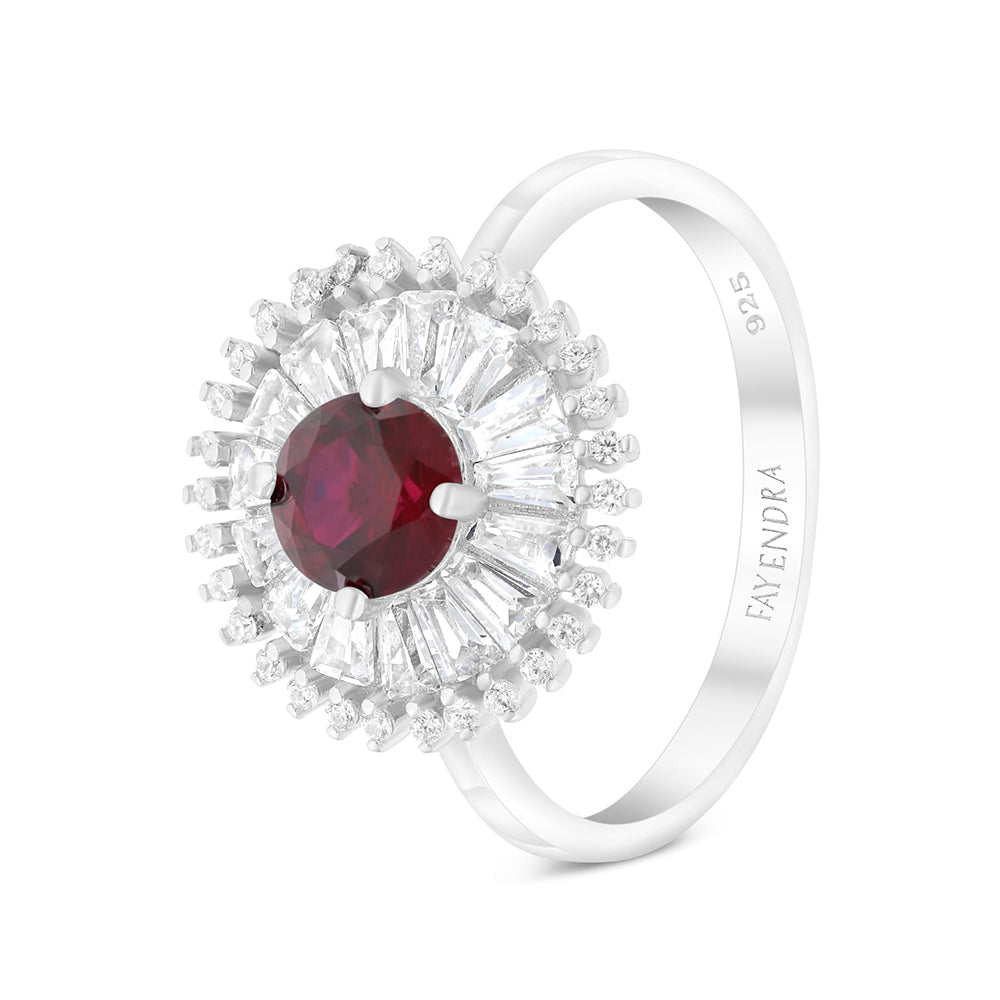 Sterling Silver 925 Ring Rhodium Plated Embedded With Ruby Corundum