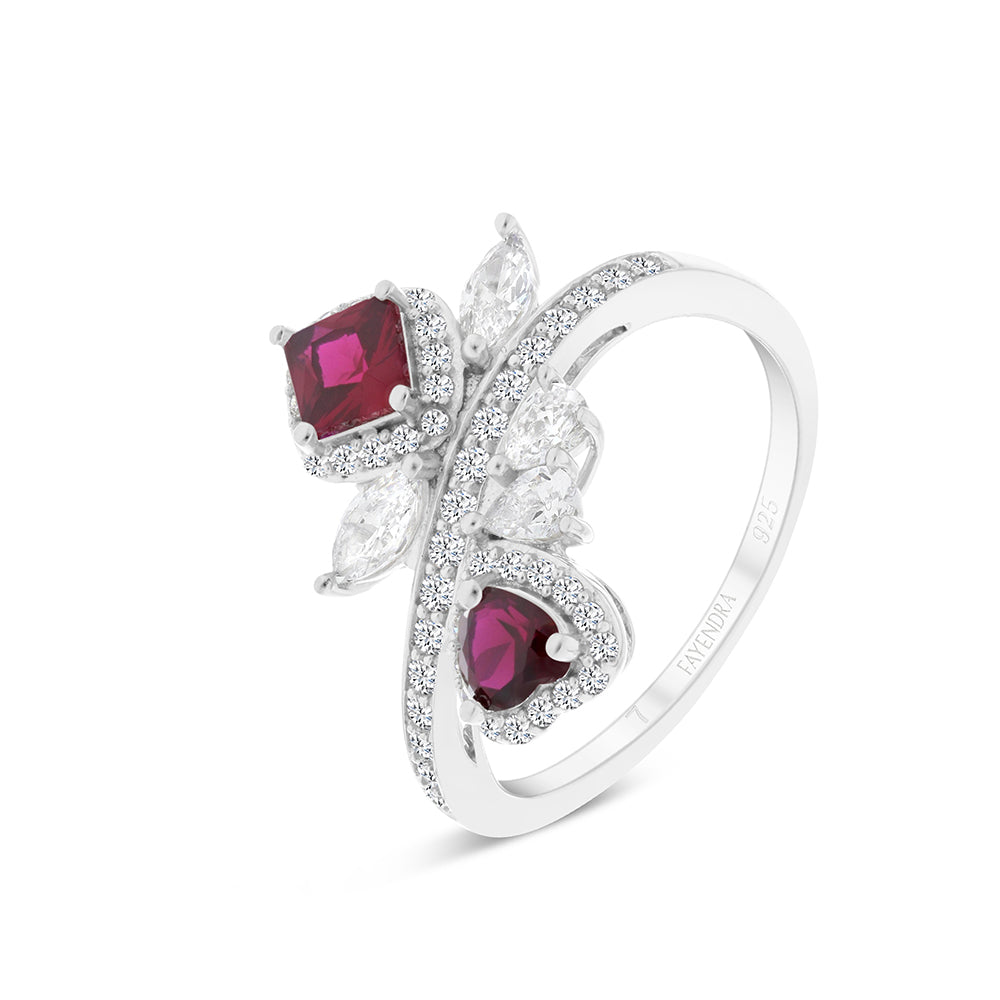 Sterling Silver 925 Ring Rhodium Plated Embedded With Ruby Corundum And White CZ