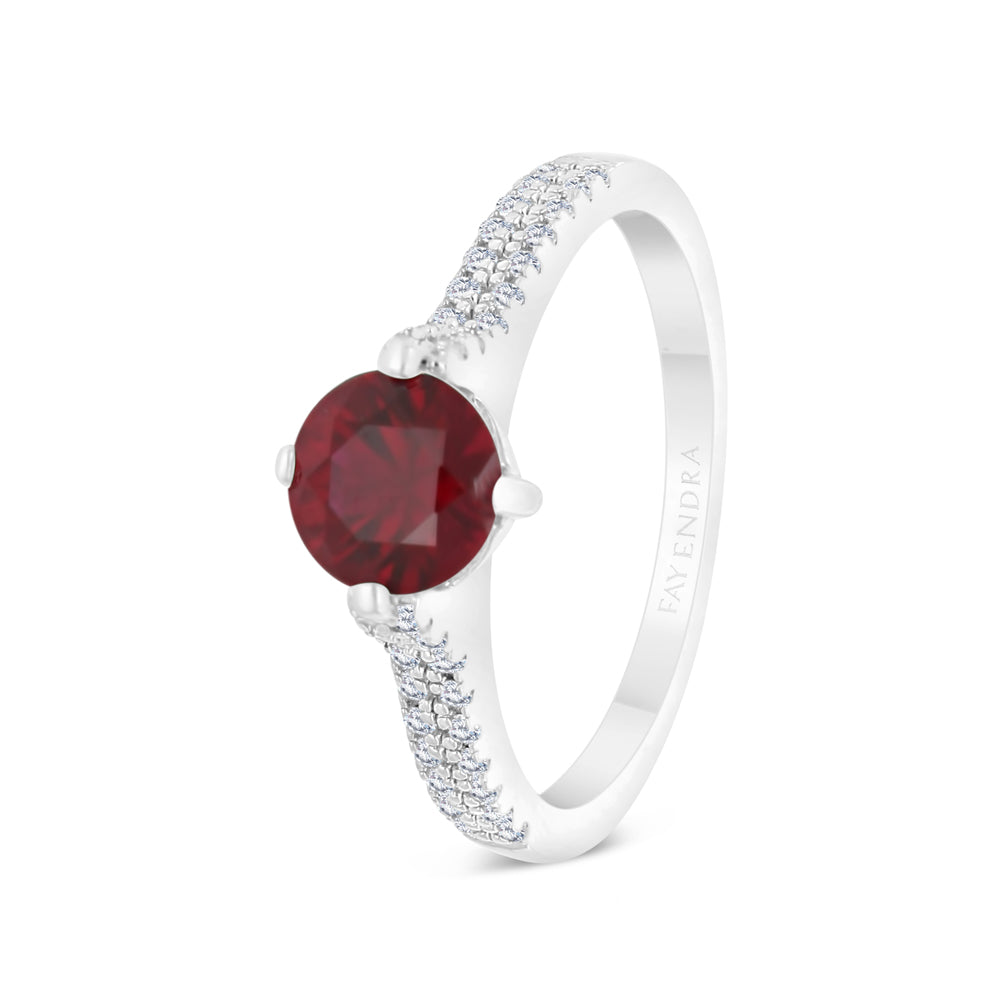 Total weight: 3.3gSolitaire rings symbolize the most precious moments of life and are distinguished by unparalleled classic elegance. They are characterized by the simplicity that makes them suitable for daily use, and their timeless beauty. Fayendra offers a versatile collection of 925 sterling silver solitaire rings with various stones, including this elegant ring, crowned with ruby corundum and embellished with white zircons set on its metal.