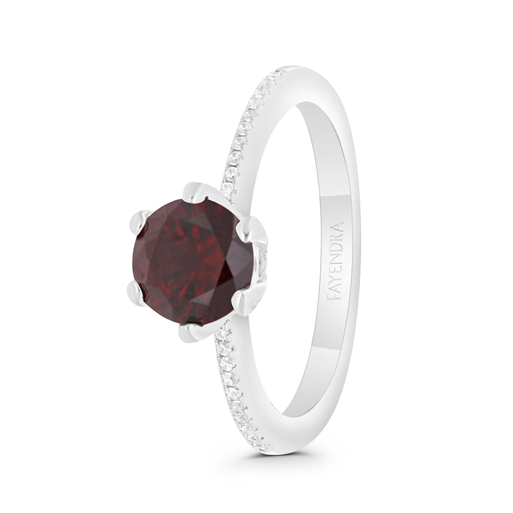 Total weight: 3.2gSolitaire rings symbolize the most precious moments of life and are distinguished by unparalleled classic elegance. They are characterized by the simplicity that makes them suitable for daily use, and their timeless beauty. Fayendra offers a versatile collection of 925 sterling silver solitaire rings with various stones, including this elegant ring, crowned with ruby corundum and embellished with white zircons set on its metal.