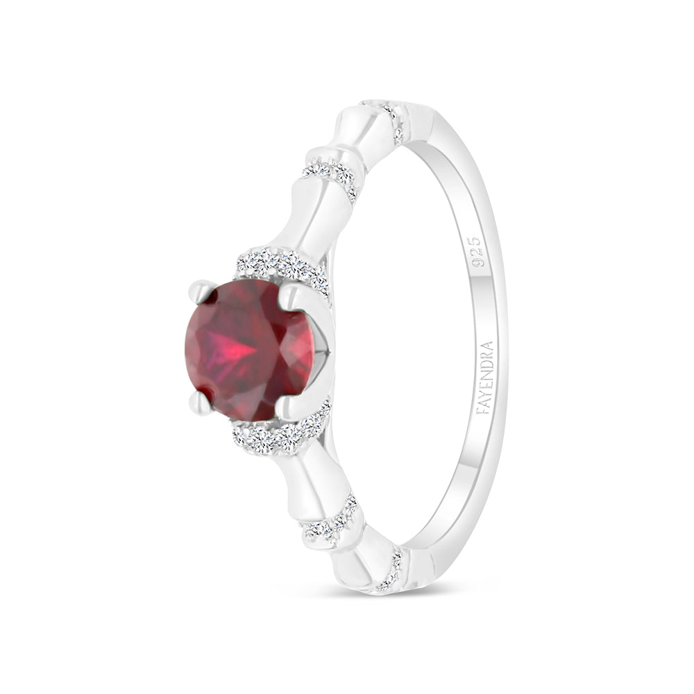 Sterling Silver 925 Ring Rhodium Plated Embedded With Ruby Corundum And White CZ