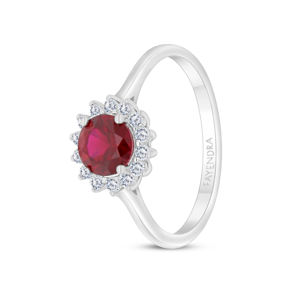 Sterling Silver 925 Ring Rhodium Plated Embedded With Ruby Corundum And White CZ