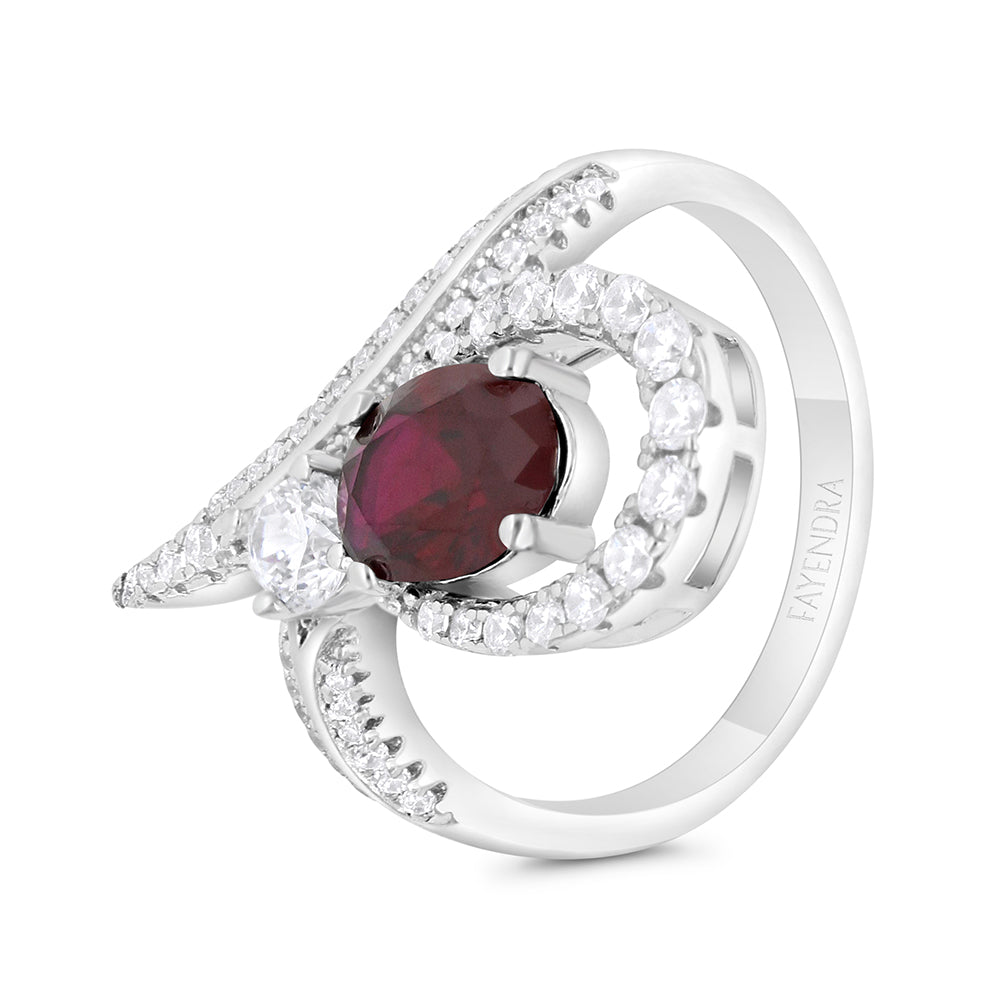 Total weight: 5gMake a lasting impression wherever you go with this dazzling 925 sterling silver ring, plated in rhodium and adorned with a sparkling central ruby corundum stone in an oval cut, and with sparkling white cubic zirconia stones distributed over the metal carefully.