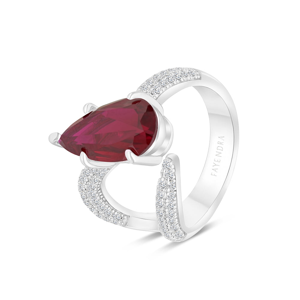 Sterling Silver 925 Ring Rhodium Plated Embedded With Ruby Corundum And White CZ