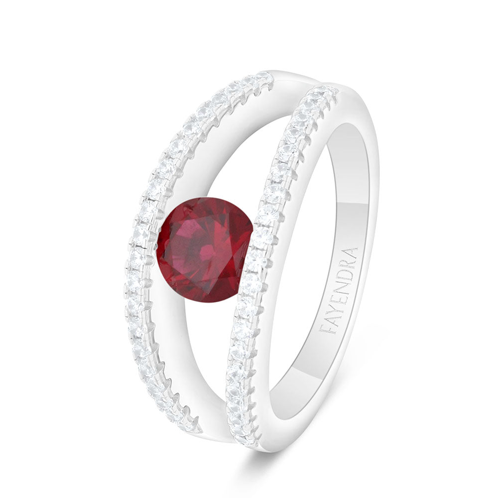 Sterling Silver 925 Ring Rhodium Plated Embedded With Ruby Corundum And White Zircon