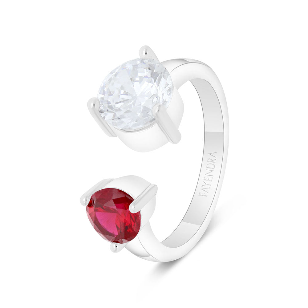 Sterling Silver 925 Ring Rhodium Plated Embedded With Ruby Corundum And White Zircon