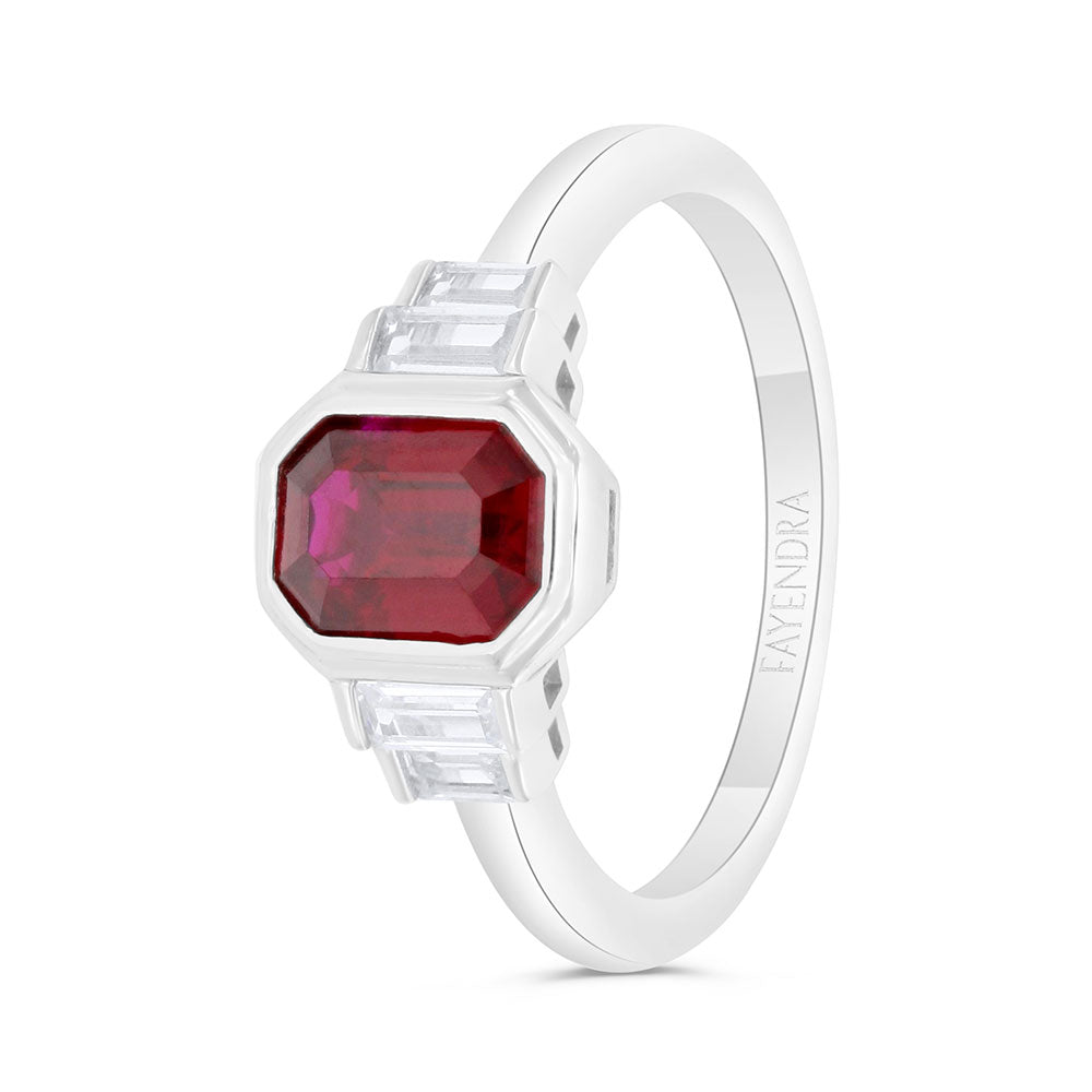 Total weight :3.3gThis fascinating ring is crafted from sterling silver, which is known for its strength and radiance. The silver band is skillfully rhodium plated, producing a sparkling backdrop for the lovely ruby corundum stone it boldly displays.