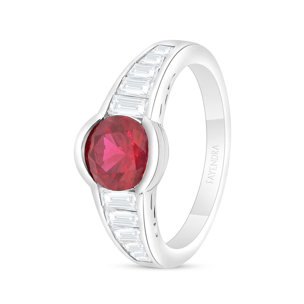 Sterling Silver 925 Ring Rhodium Plated Embedded With Ruby Corundum And White Zircon