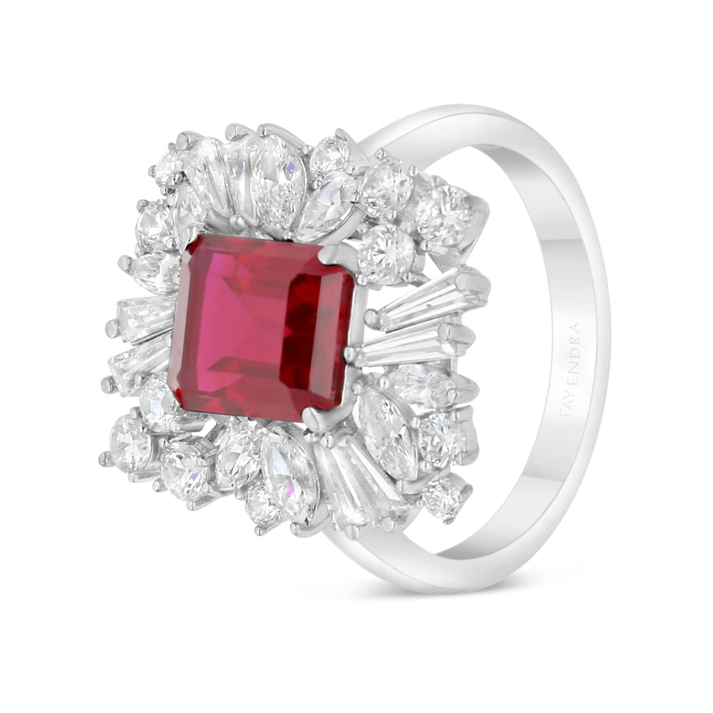 Sterling Silver 925 Ring Rhodium Plated Embedded With Ruby Corundum And White Zircon