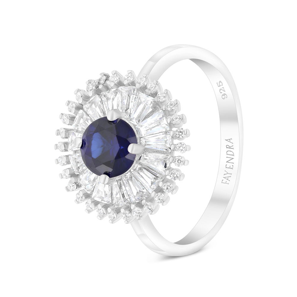 Sterling Silver 925 Ring Rhodium Plated Embedded With Sapphire Corundum