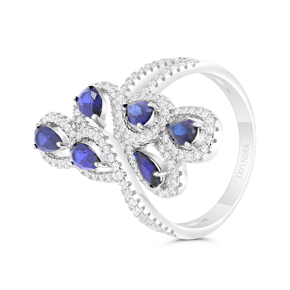 Crafted with great care and artistic innovation, this ring represents a unique embodiment of luxury and sophistication. It is distinguished by its elegant and luxurious design that combines the beauty of pure silver with the sparkle of colored sapphires and zircon that captures and reflects light in an enchanting way.Each sapphire and zircon stone is perfectly set in the metal to guarantee you incredible brilliance and unparalleled quality. The ring is suitable for all occasions, as it adds a touch of attractiveness and sparkle to your look. Wear this ring to have a unique look that combines elegance and modernity, and to feel radiant And beautiful every time you wear it.”