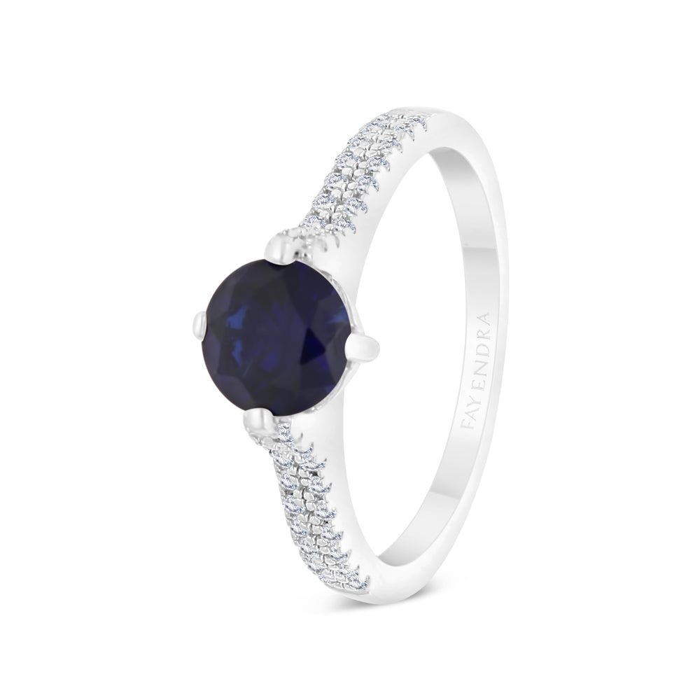 Total weight: 3.3gSolitaire rings symbolize the most precious moments of life and are distinguished by unparalleled classic elegance. They are characterized by the simplicity that makes them suitable for daily use, and their timeless beauty. Fayendra offers a versatile collection of 925 sterling silver solitaire rings with various stones, including this elegant ring, crowned with sapphire corundum and embellished with white zircons set on its metal.