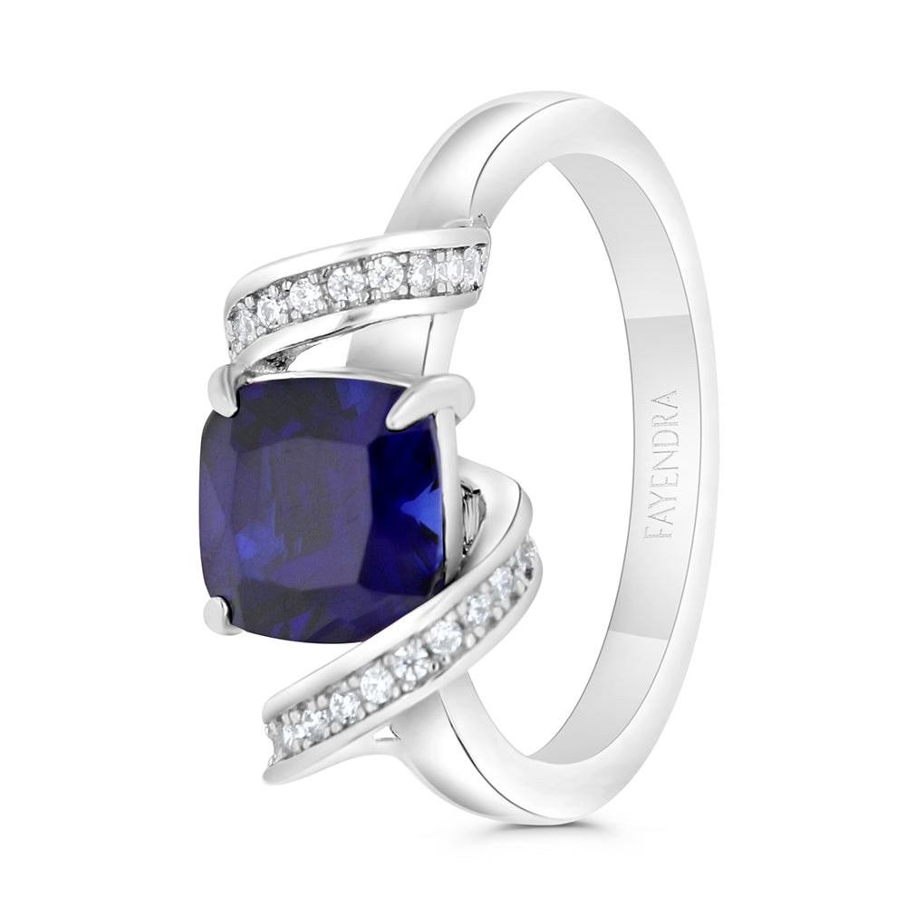 Total weight: 4.3gGet glamorous and elegant, with this luxurious sterling silver ring. The rhodium-plated ring is adorned with a sapphire corundum stone in emerald cut, embraced by a shiny metal embellished with sparkly white stones pave, match it with similar earrings from our collection and enjoy the fine elegance.