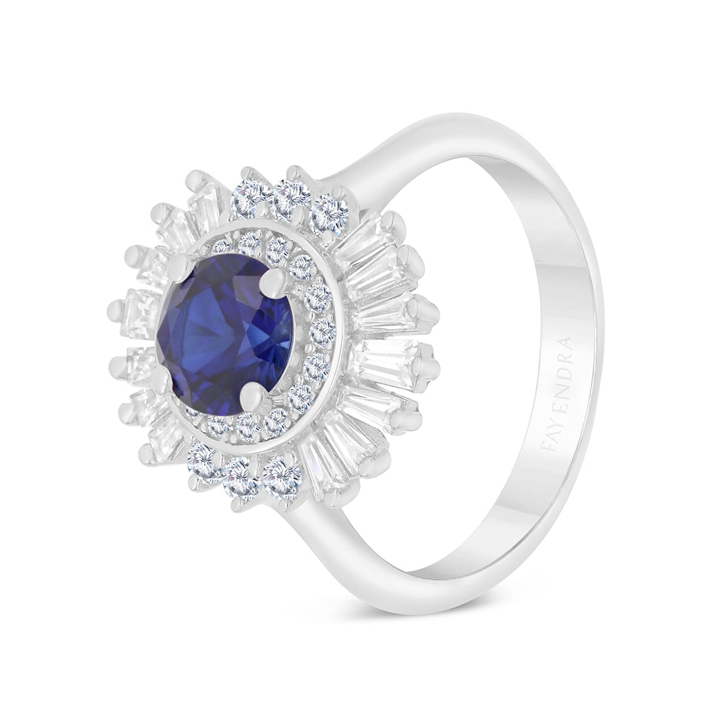 Sterling Silver 925 Ring Rhodium Plated Embedded With Sapphire Corundum And White CZ