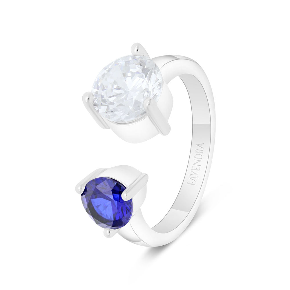 Sterling Silver 925 Ring Rhodium Plated Embedded With Sapphire Corundum And White Zircon
