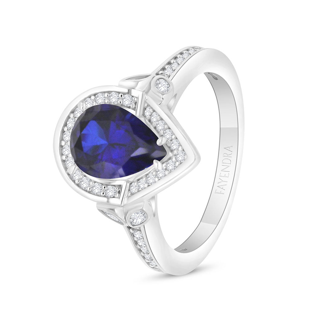 Sterling Silver 925 Ring Rhodium Plated Embedded With Sapphire Corundum And White Zircon