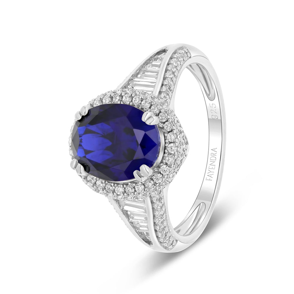 Sterling Silver 925 Ring Rhodium Plated Embedded With Sapphire Corundum And White Zircon
