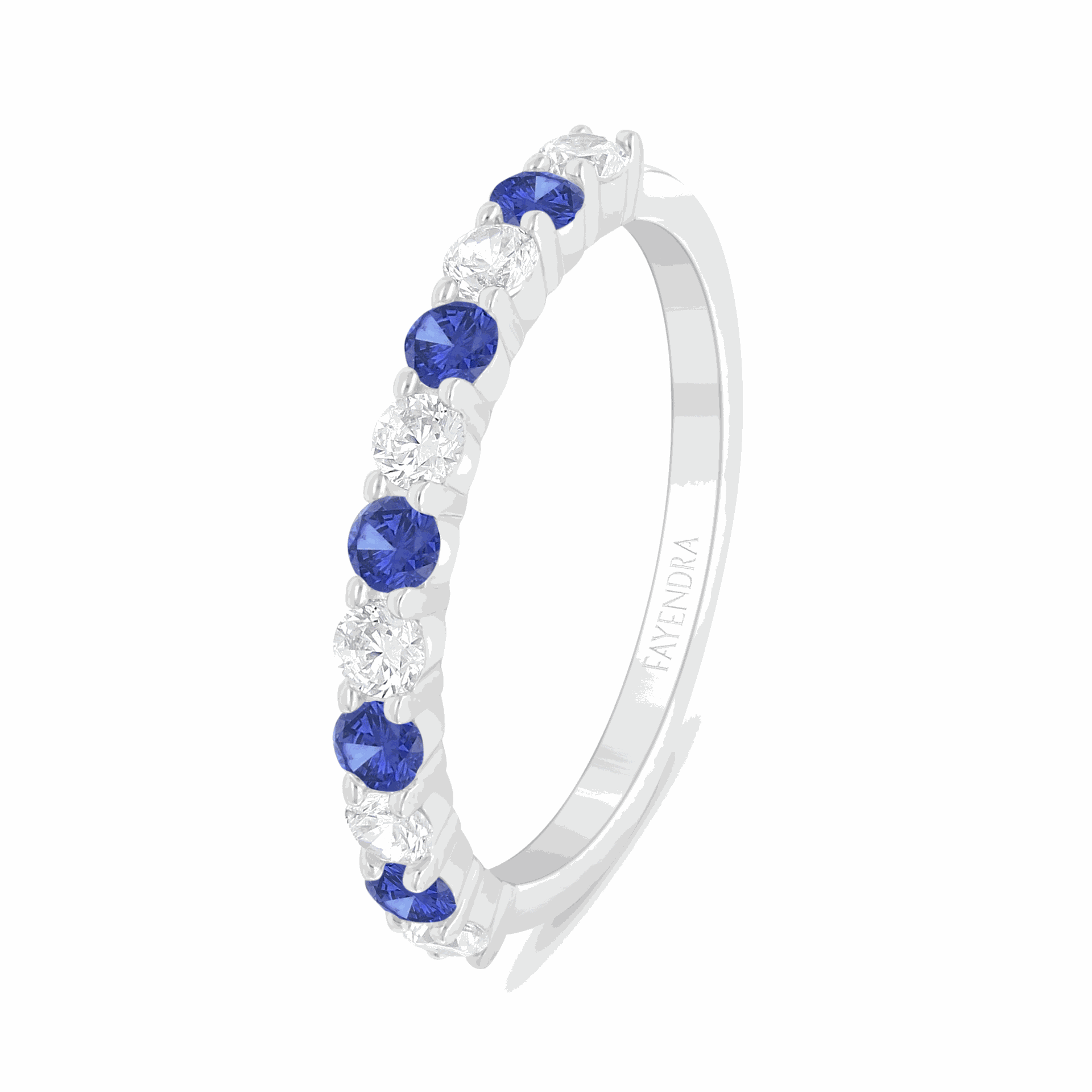 Sterling Silver 925 Ring Rhodium Plated Embedded With Sapphire Corundum And White Zircon