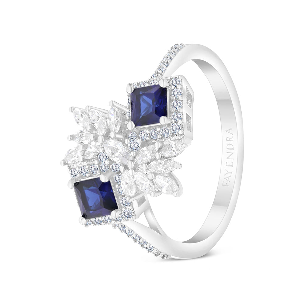 Sterling Silver 925 Ring Rhodium Plated Embedded With Sapphire CorundumAnd White CZ