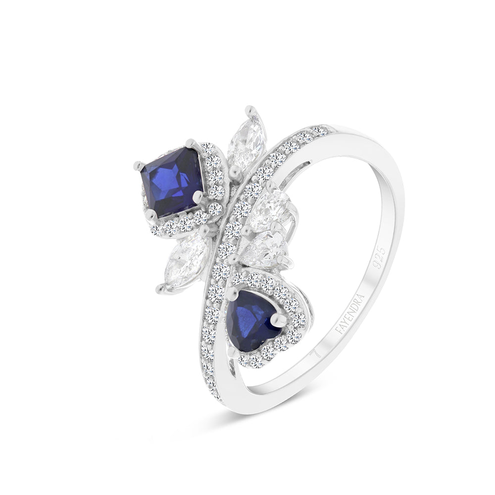 Sterling Silver 925 Ring Rhodium Plated Embedded With Sapphire CorundumAnd White CZ